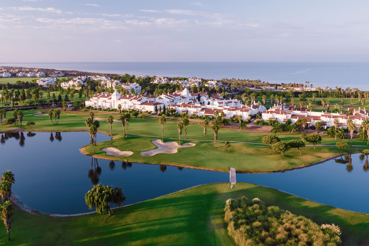 Costa Ballena Ocean Golf Club er et golfanlæg med 27 skønne huller beliggende direkte ved Atlanterhavet. Der er 3 sløjfer, som ligger i et relativt fladt terræn og der er derfor ikke behov for en buggy for at få en god oplevelse på golfbanen. Alle tre sløjfer starter ved det tilhørende klubhus, hvilket gør det nemt at variere oplevelsen.
