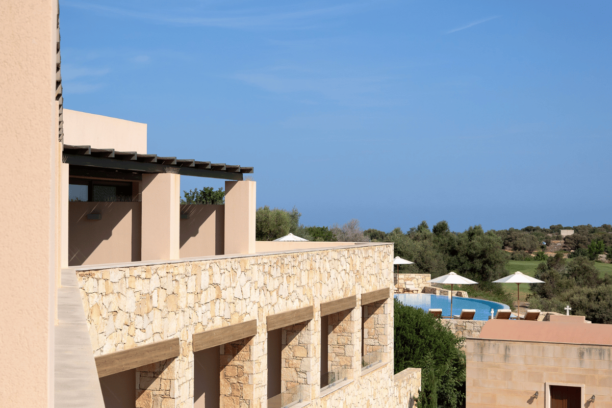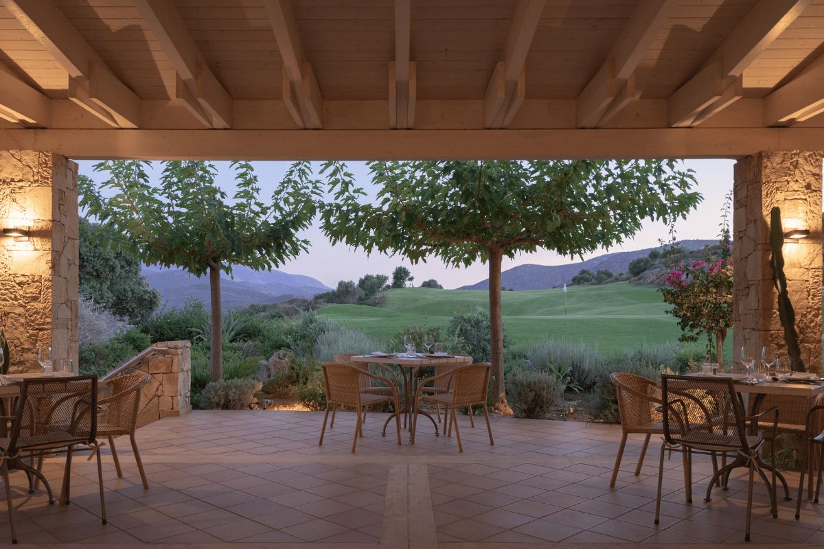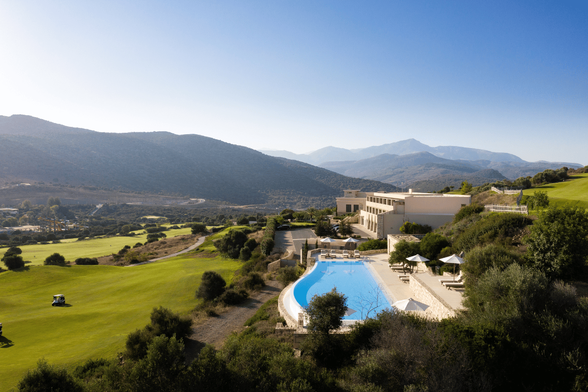 Den flotte udendørs pool er beliggende med udsigt til golfbanen og de omkringliggende bjerge, og i klubhuset finder man resortets restaurant og bar, hvor der servereres græske og internationale retter af høj kvalitet.