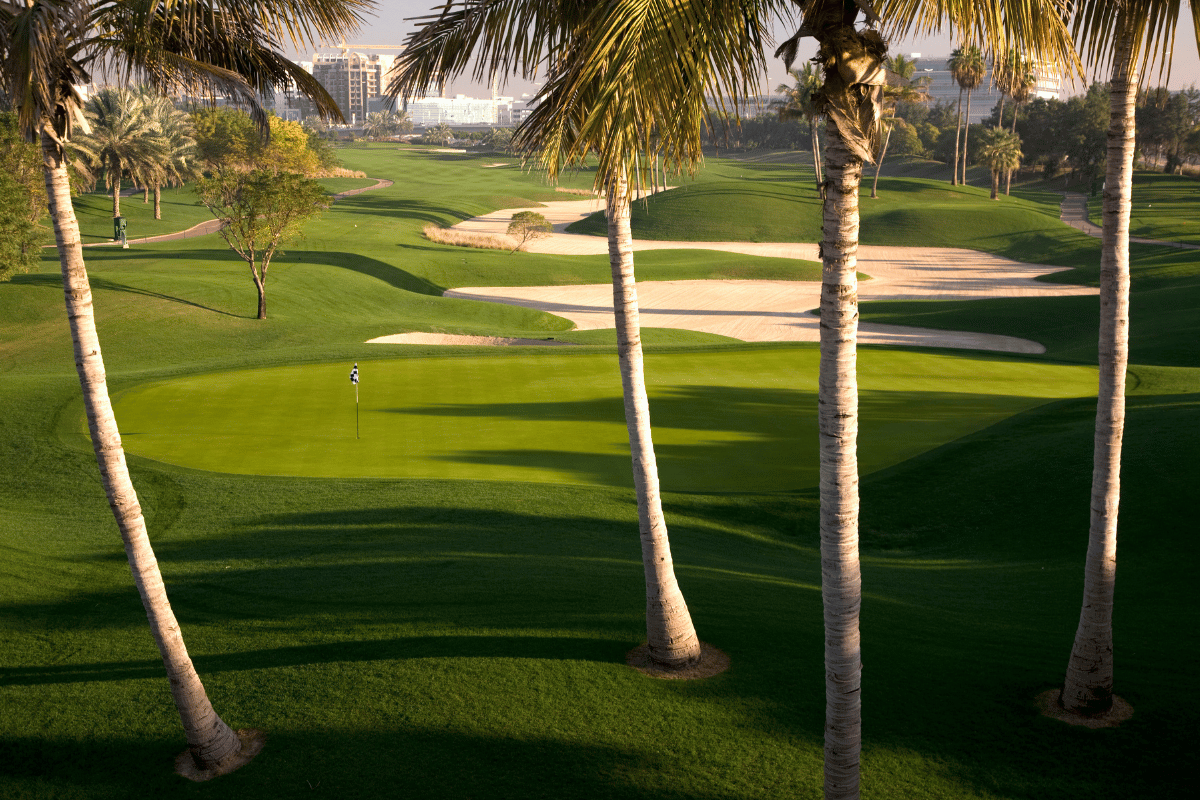 Dubai Creek Golf & Yacht Club er en af byens mest ikoniske baner med en smuk placering langs Dubai Creek. Denne par 71-bane byder på en klassisk parkland-oplevelse med palmer, vandhazarder og en imponerende afslutning langs vandet. Med sin centrale beliggenhed og fantastiske udsigt er banen både udfordrende og visuelt betagende – et must for enhver golfrejsende i Dubai.