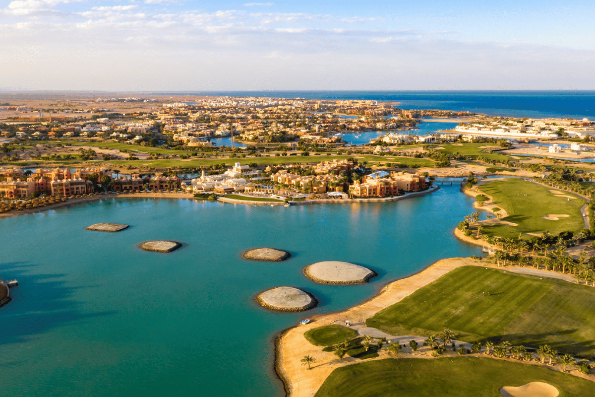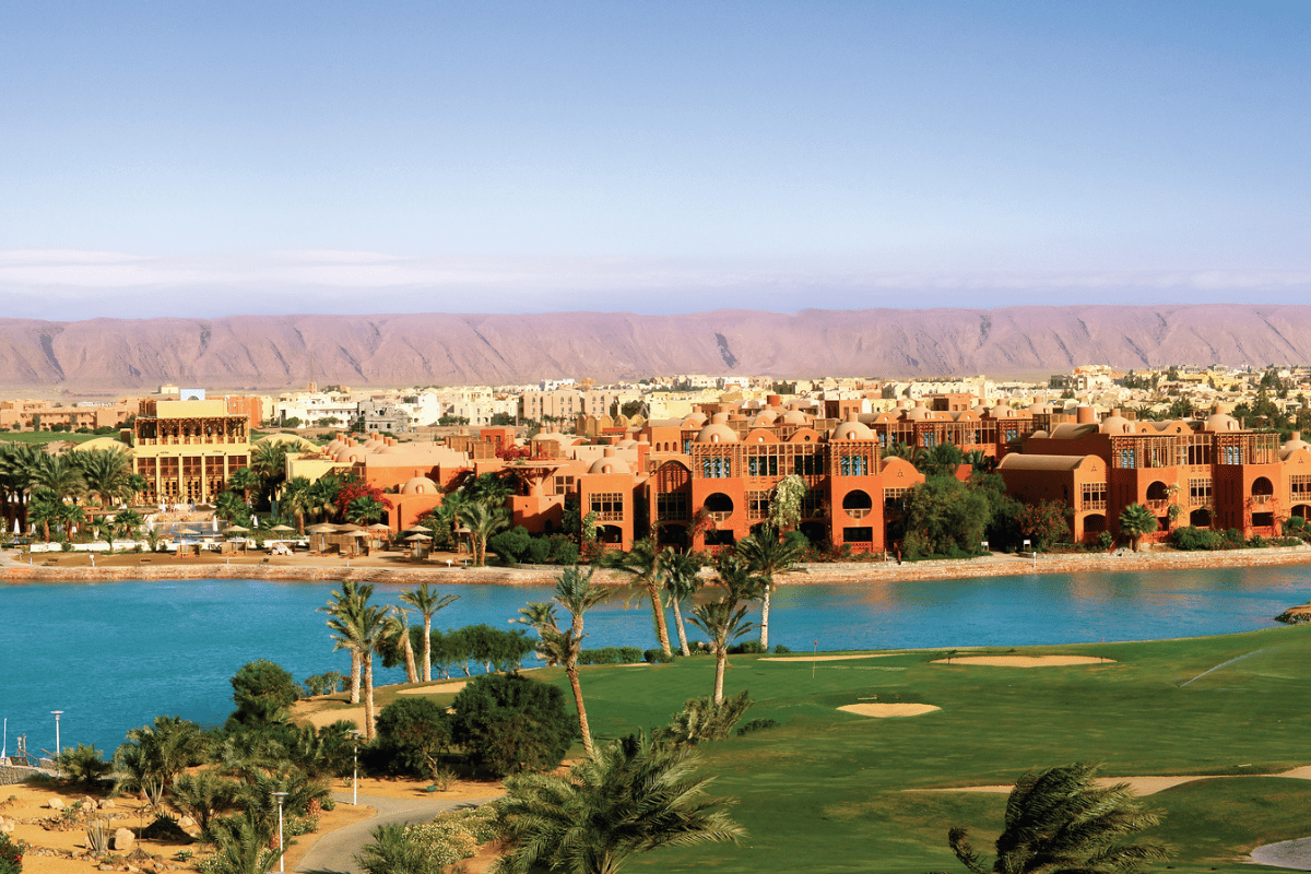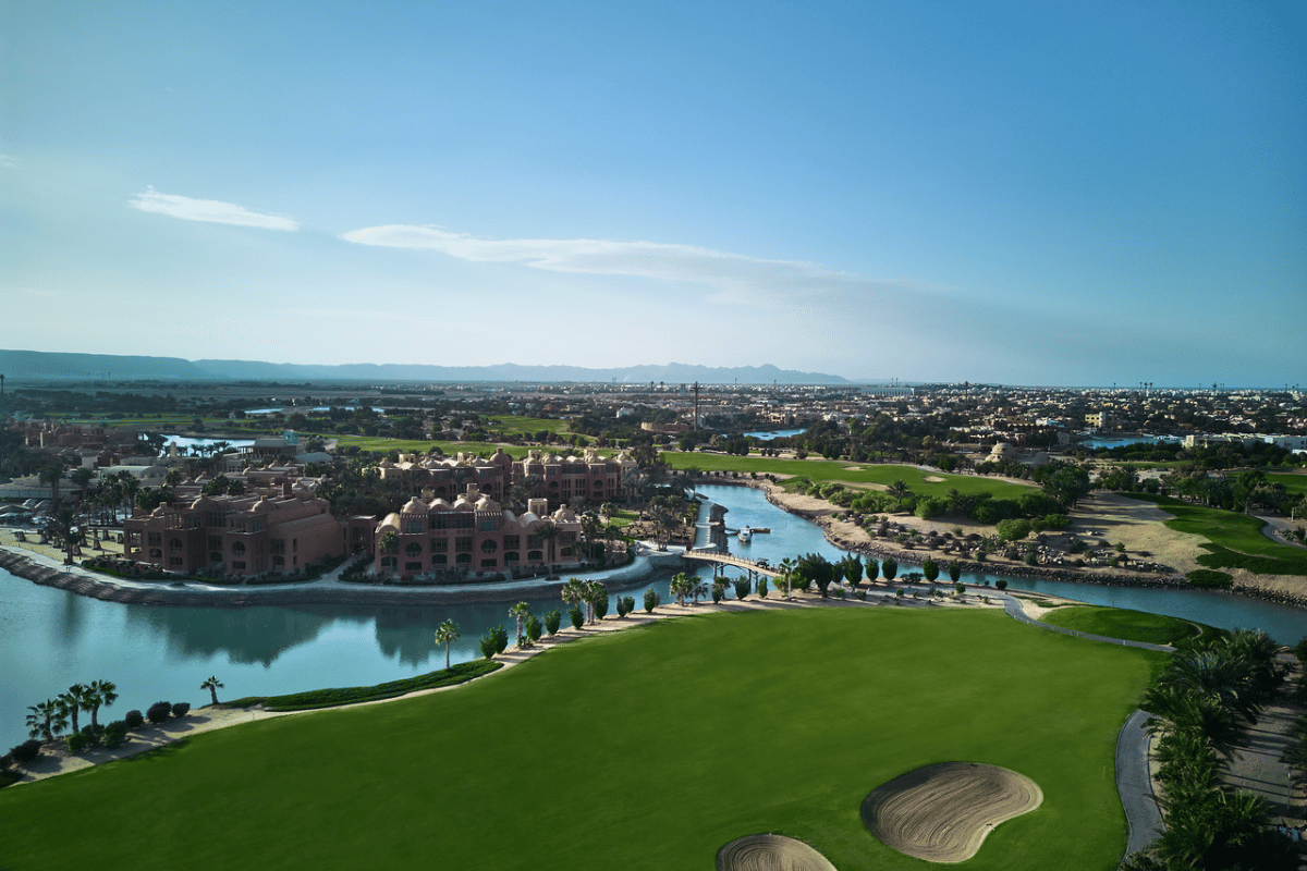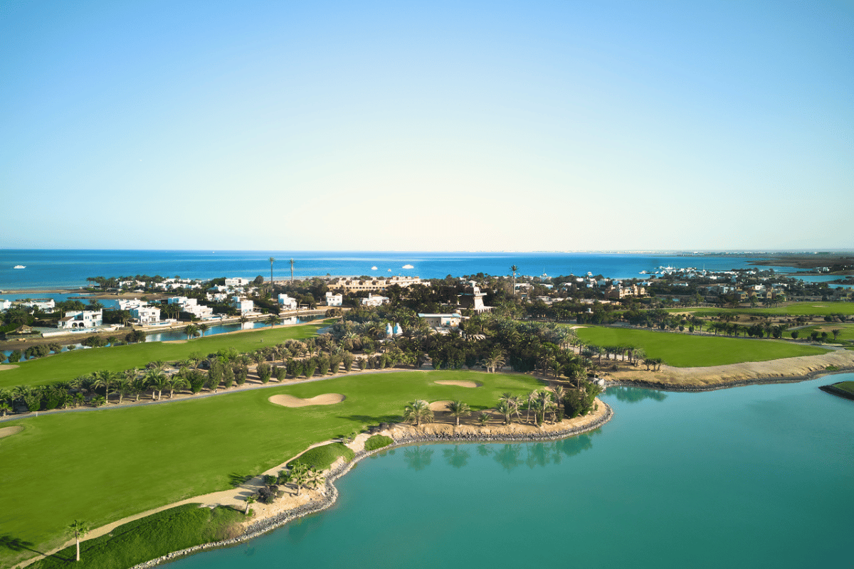 El Gouna Golf ligger i hjertet af El Gouna området, og I vores pakker er der fri shuttle service fra nævnte hoteller til og fra golfbanen. Golfbanen byder på en ørkenoplevelse udover det sædvanlige. Banen er bygget midt i El Gounas kanalsystem og snor sig mellem de små kanaler. Golfbanen er designet af Fred Couples og Gene Bates og de har designet en hyggelig parkbane, som kan spilles af alle golfspillere.
