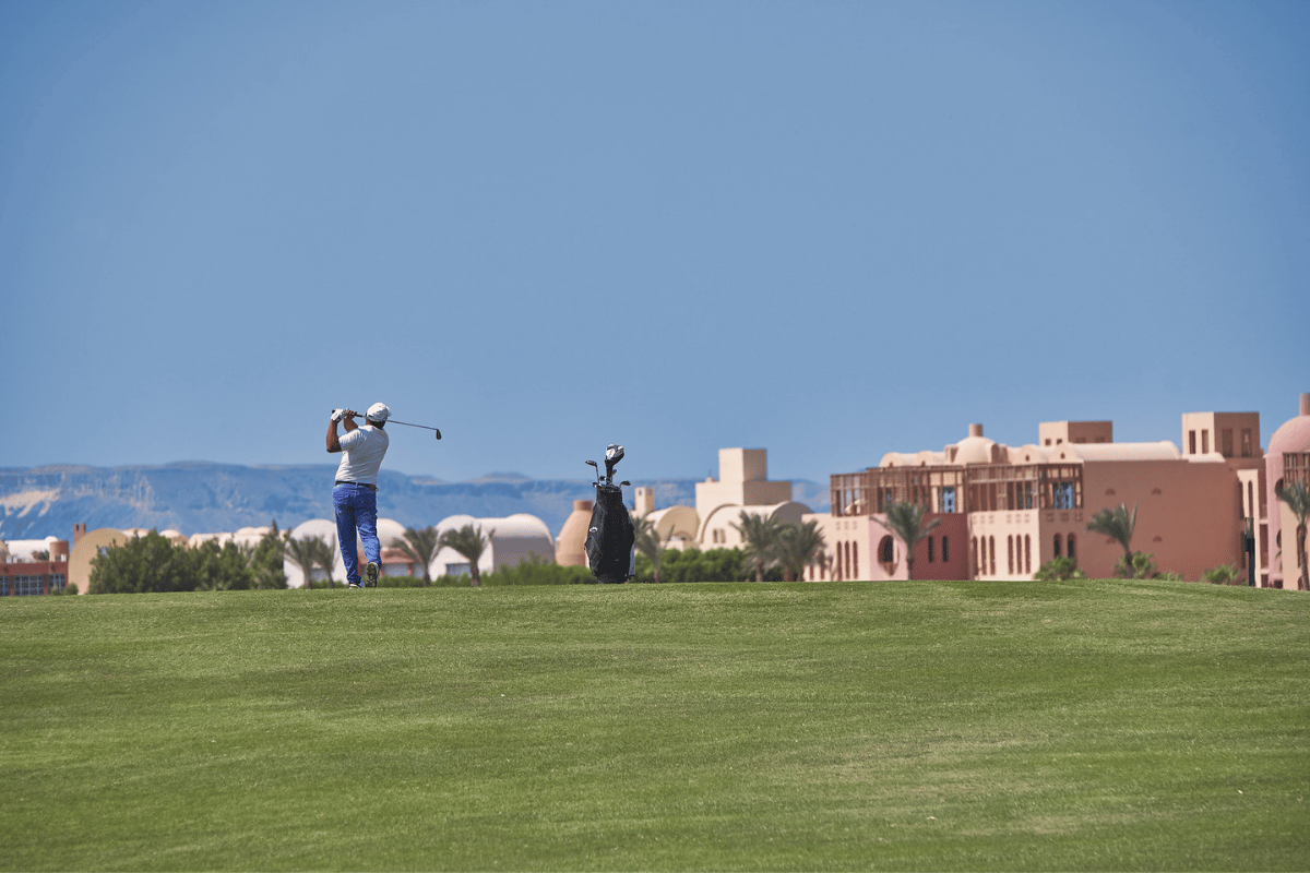 Hvis du ønsker opvarmning inden runden har El Gouna anlagt en anderledes og sjov driving range, hvor man står og slår bolde ud i en stor sø med små anlagte øer som “targets”. Det tilhørende klubhus er ganske charmerende og herfra kan du nyde kolde drikkevarer efter en varm golfrunde på El Gouna golf.
