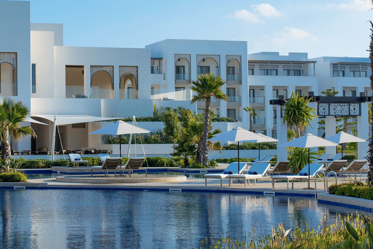 Forestil dig at vågne op på et imponerende 5‑stjernet resort ved kysten nær Tanger. Hilton Tangier Al Houara er omgivet af 60 hektar beskyttet skov og ligger direkte ud til havet med sin egen private strand og flere udendørs pools. Hotellet på en helt unik og enestående golfbane, desuden er der spa, fitness, børneklub og tre restauranter at finde på hotellet – med udsigt over Atlanterhavet eller haven. Fra hotellet er der kun en kort køretur til Tanger by med mulighed for heldagsudflugter til byens medina, kasbah og Hercules‑grotterne.