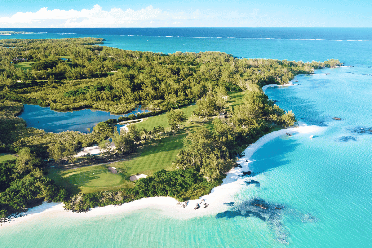 Mange regner Ile Aux Cerfs Golf Club for at være en af verdens smukkest beliggende golfbaner. Og placeringen er da også unik. Den berømte golfbane er designet af tyskeren Bernhard Langer, som har skabt et vidunderligt golfanlæg. Hullerne snor sig gennem det kuperede landskab på den sydligste del af øen og fra flere af hullerne er der et smukt kig til havet. Vand er i det hele taget en essentiel del af banens design. Der er således 9 søer integreret i banens layout, og på tre huller skal der fra tee slås hen over vand for at nå fairway.