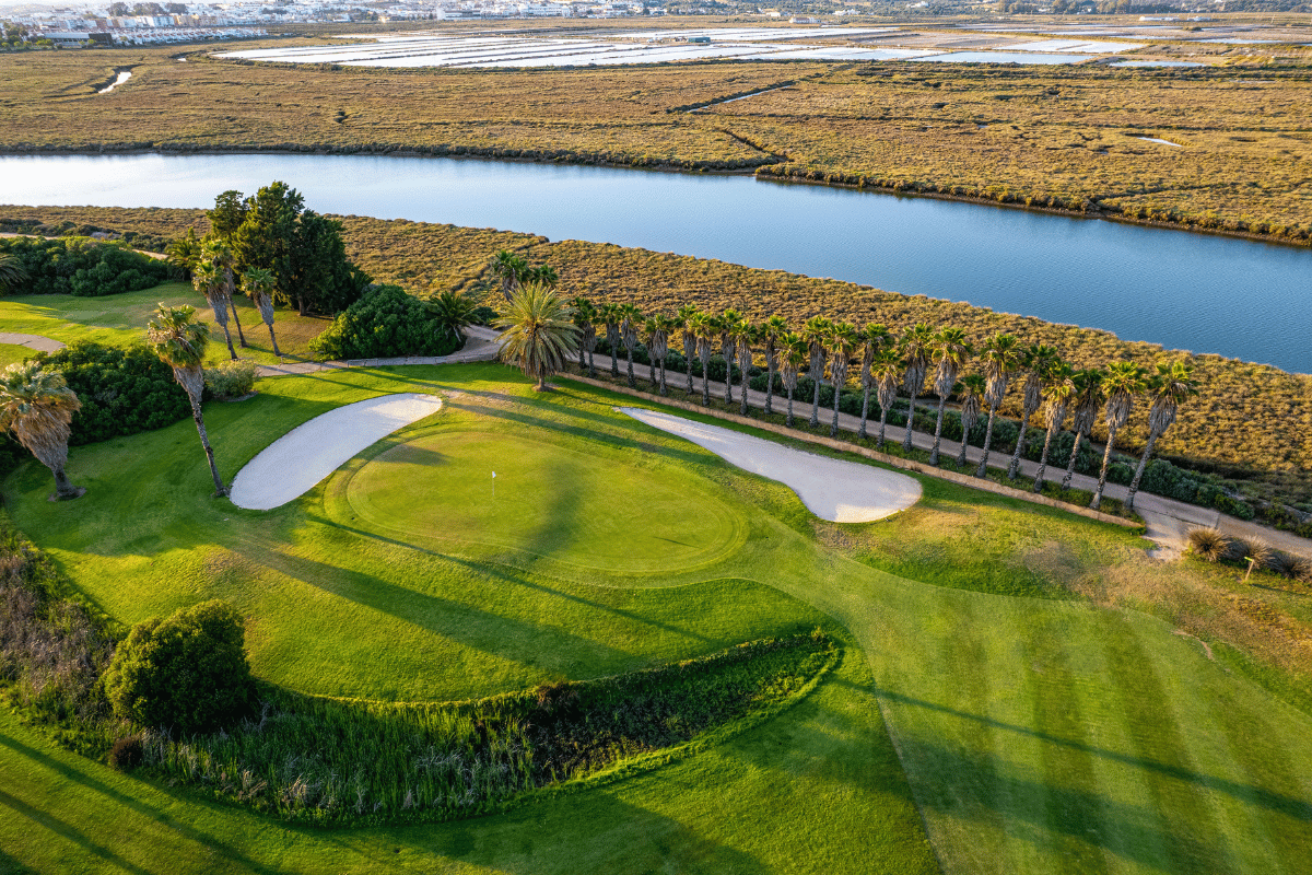 Isla Canela Links er en ny og moderne bane, der ligger langs Guadiana-flodens bredder med en betagende udsigt over Spanien og Portugal. Denne 18-hullers linksbane byder på smalle fairways, naturlige vandhazarder og vind, der giver en ekstra udfordring. Banen er omhyggeligt integreret i det omkringliggende marskland, hvilket gør den både teknisk krævende og visuelt imponerende. Isla Canela Links er perfekt til golfspillere, der søger en anderledes og dynamisk runde i en unik kystnær beliggenhed.