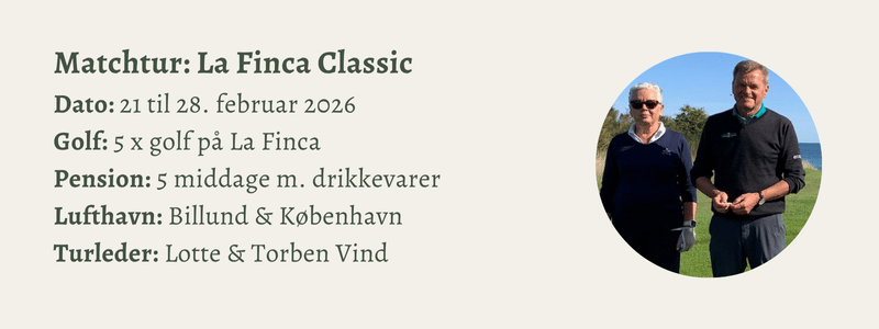 Rejs med Lotte & Torben Vind på en matchtur til La Finca i Alicante området, og oplev ét af de bedste golfresorts i Spanien.