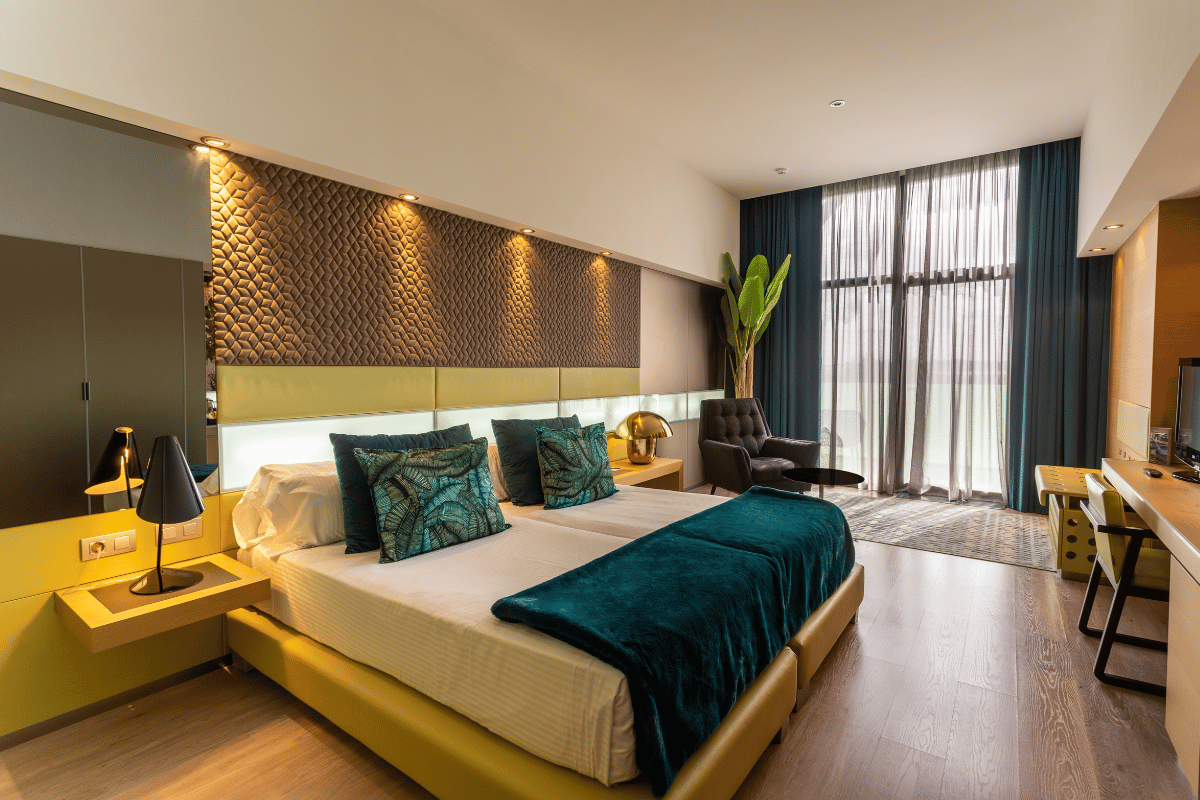 La Finca Hotel er et moderne femstjernet hotel beliggende direkte på hotellets egen golfbane. Hotellet råder over 120 lyse og rummelige værelser og suiter, alle med store terrasser eller balkoner med udsigt over golfbanen, poolområdet eller de grønne haver. Værelserne er udstyret med aircondition, fladskærms-tv, minibar samt elegante badeværelser med regnbruser og badekar. Der er mulighed for sammenhængende værelser til familier, og der er gratis Wi-Fi på hele hotellet.
