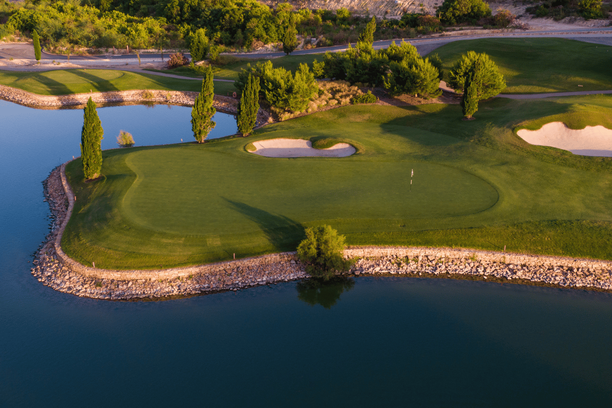 Golfbanen er designet af den anerkendte amerikanske landskabsarkitekt Cabell B. Robinson, som også står bag berømte baner som La Reserva i Sotogrande, Finca Cortesín på Costa del Sol, Praia d’El Rey i Portugal og Royal Golf d'Evian i Frankrig. Robinsons filosofi fokuserer på at integrere banen harmonisk i det eksisterende landskab, hvilket resulterer i en bane, der smelter sammen med den omkringliggende natur.