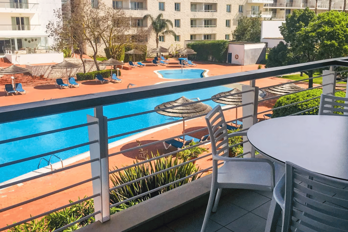 Resortet har 150 suiter og lejligheder fordelt på 1 værelses Studio (T0) og 2 værelses Suiter (T1) samt lejligheder med både 2 og 3 soveværelser. green2green har sikret sig Suiter med soveværelse, stue med kitchenette og badeværelse. Disse T1 Suiter er moderne, særdeles flotte og smagfuldt indrettet – med TV, balkon mm. Vi anbefaler, at man vælger værelser med marina/pool view mod et mindre tillæg.