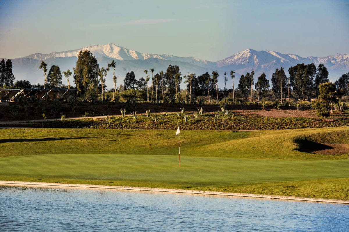 Noria Golf Club er et 18-hullers par-72 championship-anlæg beliggende få kilometer syd for Marrakech med udsigt til snedækkede Atlasbjerge og omgivet af olivenlunde, lavendelmarker og ørkenagtige landskaber. Banen er designet af den britiske golfarkitekt Steve Forrest, der har skabt et innovativt og lokalt inspireret layout med tre tematisk distinkte sektioner – “Garden”, “Orchard” og “Dune” – bundet sammen af et storslået centralt bassin. Klubhuset er inspireret af nomadetelte og sydmarokkansk arkitektur med tårne og kunstneriske elementer.