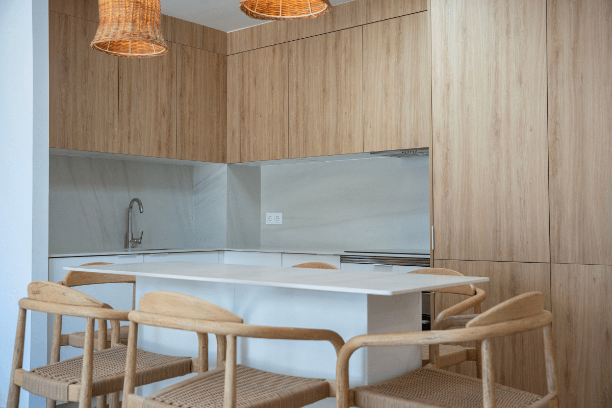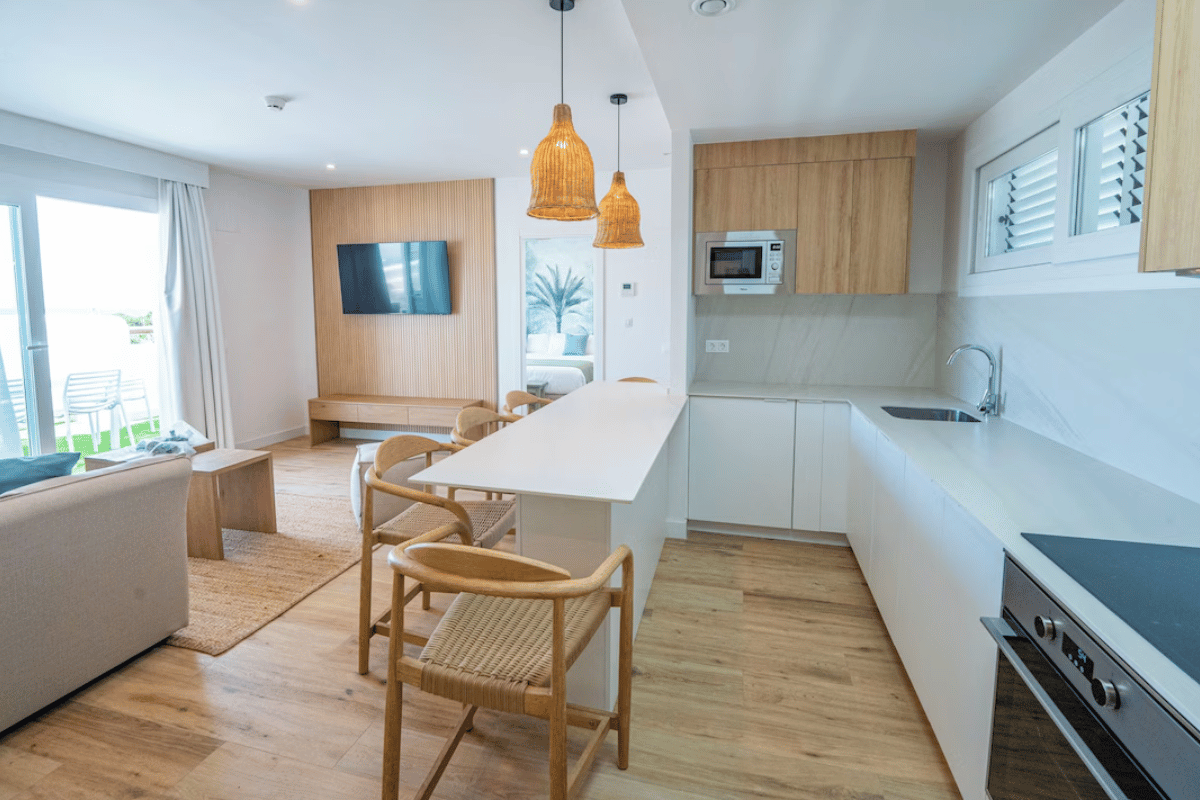 Lejlighederne er lyse og fuldt udstyret med moderne bekvemmeligheder såsom komfur, ovn, vaskemaskine og opvaskemaskine. Hver lejlighed har et eller to soveværelser, og der er parkeringskælder under bygningen. Her kan du nyde et komfortabelt long stay ophold med nærhed til både strand og golf.