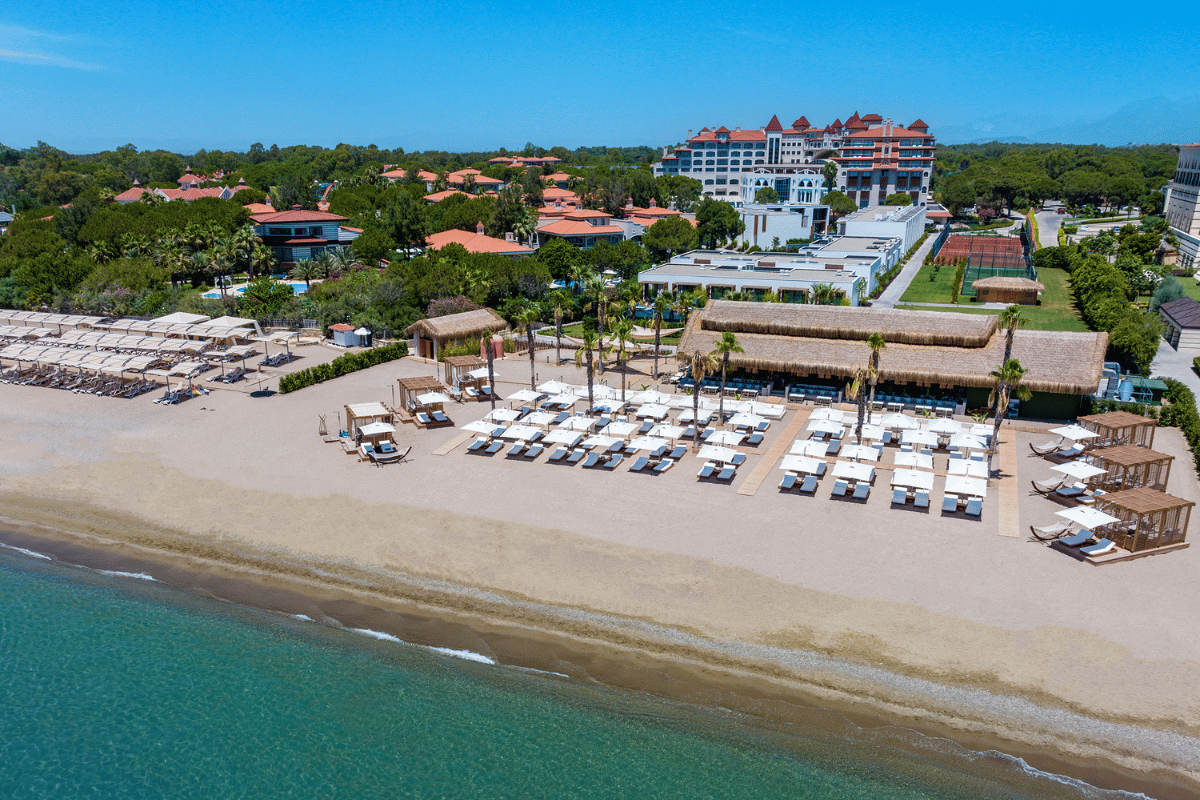 Resortet tilbyder 498 rummelige værelser og suiter, mange med udsigt over havet eller de omkringliggende golfbaner. Gæsterne kan nyde et bredt udvalg af kulinariske oplevelser i hotellets seks restauranter, der serverer alt fra tyrkiske specialiteter til internationale retter, samt slappe af i en af de syv barer på stedet.