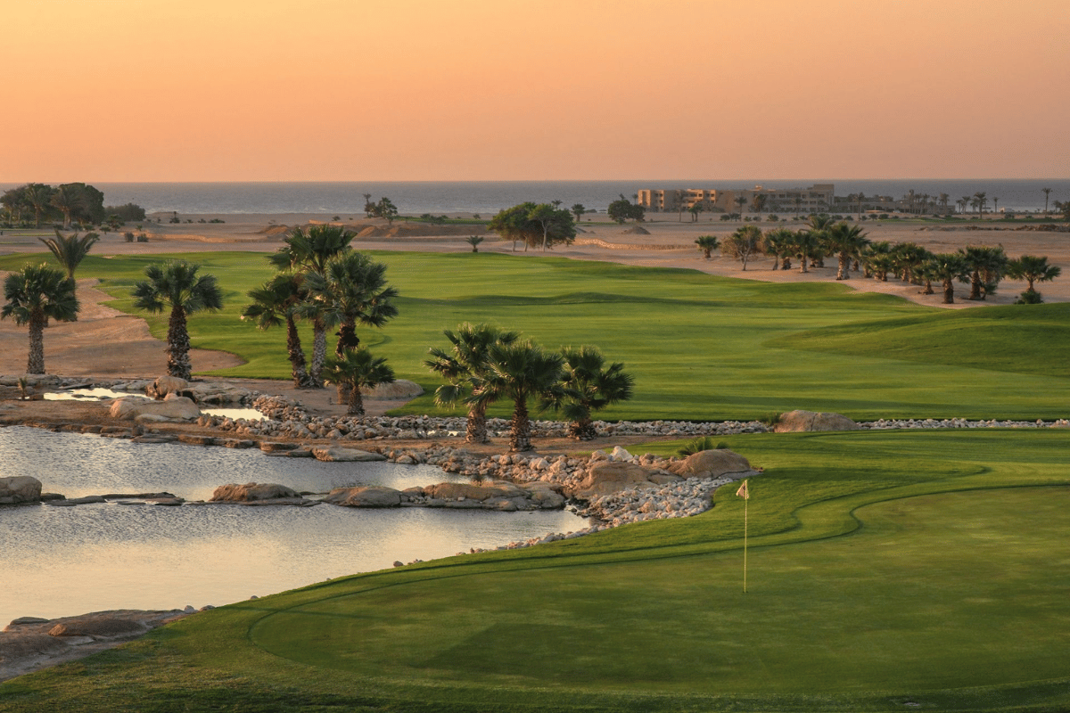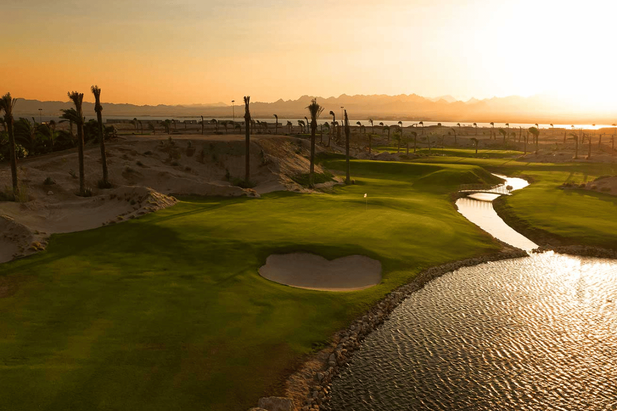 Soma Bay er designet af den anerkendte golfarkitekt, Gary Player. Banen blev etableret i 1998 og regnes i dag for at være blandt de bedste baner i Egypten. Golfbanen er kategoriseret som en ørkenbane, hvor fairways står i flot grøn kontrast til det omkringliggende ørkenlandskab. Hele golfanlægget imponerer med et utrolig gennemtænkt design, hvor ingen detaljer er overladt til tilfældigheder. Hullerne 4, 5, 15 og 16 løber langs Det Røde Hav og uden sammenligning banens signaturhuller.
