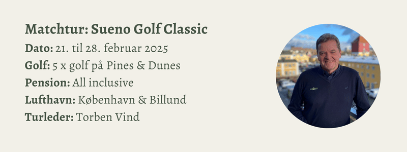 Sæt gang i foråret på denne herlige matchtur til det hyggelige Sueno Golf Hotel, som ligger i det herlige golfmekka, Belek.
