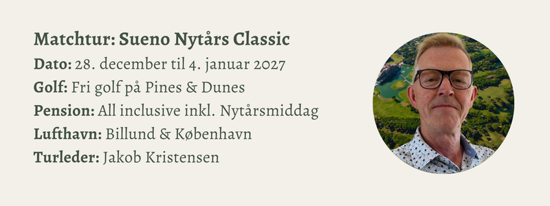 I løbet af ugen spilles der på de to tilknyttede baner, Pines og Dunes. Pakken er med fri golf og de første 5 runder er offentliggjort nedenfor. Ønskes der yderligere runder, så skal de bookes ved ankomst.