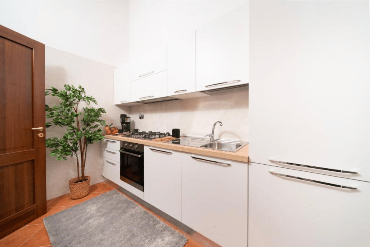 Alle lejligheder inkluderer et køkken med nødvendigt udstyr som komfur, ovn, køleskab og opvaskemaskine.