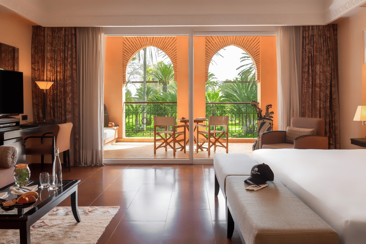 Med 54 elegante suiter i forskellige kategorier – Junior, Prestige og Royal – kombinerer hotellet marokkanske arkitektoniske detaljer med moderne komfort. Alle suiter har balkon eller terrasse med udsigt til golfbanen eller poolen og byder på rummelighed og stilfuld indretning.