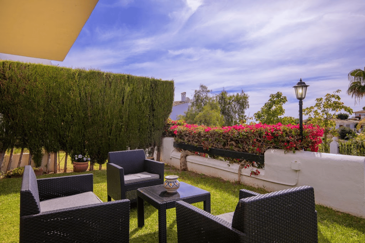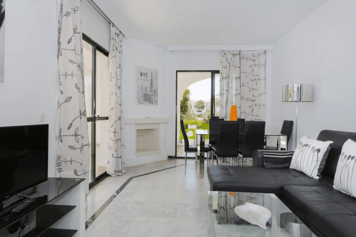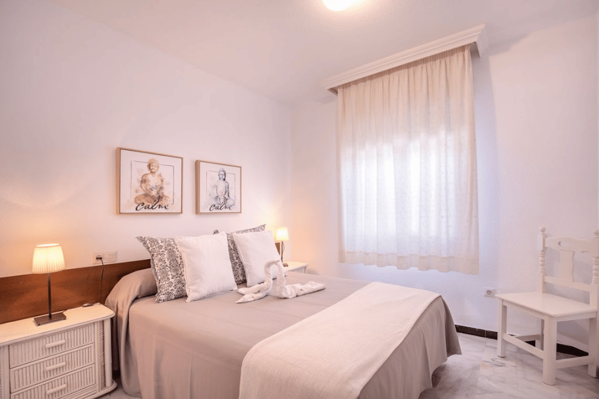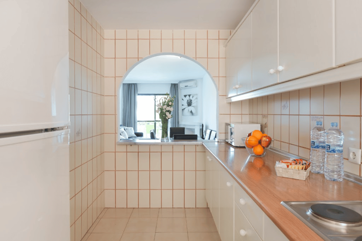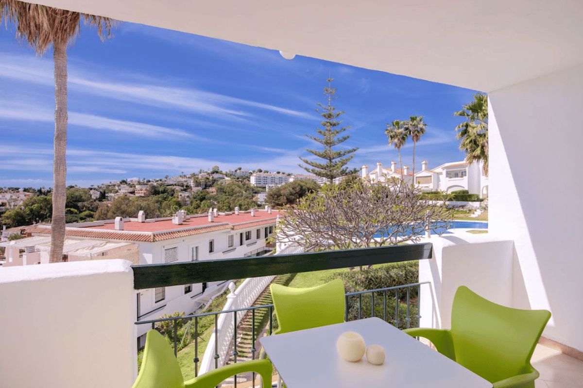 Komplekset tilbyder pæne 2-værelses lejligheder med veludstyrede køkkener, aircondition, hurtig Wi-Fi og privat terrasse eller balkon - mange med havudsigt. Der er en stor fælles swimmingpool i en frodig have, og gratis parkering på stedet. Kun seks minutters gang væk ligger et lille indkøbscenter med restauranter, en enkelt butik og en populær morgenmadsbar, hvis du har lyst til en solid engelsk morgenmad en dag.